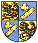 schuinbalk van blauw, beladen met drie schelpen van goud, geplaatst in de richting