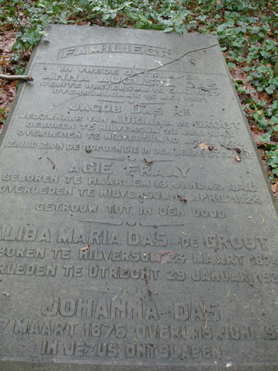 Jacob DAS geb Hilversum 26.06.1843 ber bakker overl Hilversum 10.04.1924 begr Hilversum Begraafplaats Bosdrift tr Hilversum 30.03.1871 akte nr 8 Adriana de GROOT geb Hilversum 31.03.1840 vader: Adrianus de Groot moeder: Jannetje van Schaffelaar ber overl