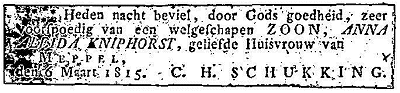 ALEIDA KNIPHORST, geliefde Huisvrouw van