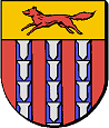 Wapen: In rood drie palen van vair en in een gouden schildhoofd een rode