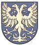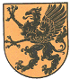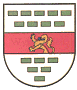 dwarsbalk van rood, beladen met een halve leeuw van goud, getongd en genageld