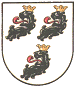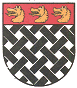 getralied van zwart en een schildhoofd van rood, beladen met drie