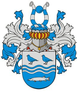vinken; b In blauw een zilveren snoek. Helmteken: Een blauwe bol