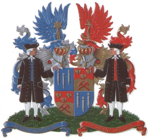 blauwe vlucht; Links: een onklaar gouden anker tussen een rode vlucht. Dekkleden: Rechts: blauw, gevoerd van zilver; Links: rood, gevoerd