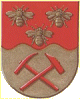 houweel en hamer, alles rood (De Bie). Helmtekens: Rechts: een zespuntige gouden staartster tussen een