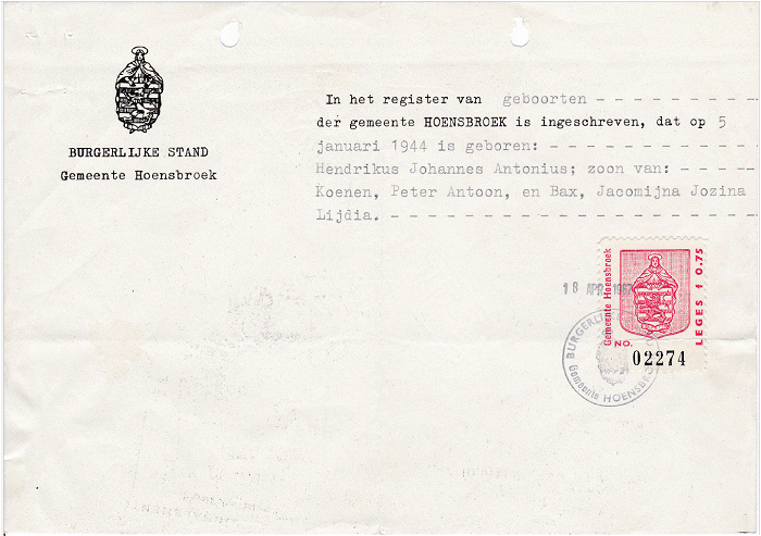 Hendrikus Johannes Antonius (Henk) KOENEN geb Hoensbroek, Limburg 05.01.1944 ber elektrotechnicus [vrijwilligersmedaille] tr Rheden, Gelderland 12.12.1969 Kerkelijk Velp, Gelderland 28.02.1970 Christus Koning parochie Ingrid BENIG geb Batavia, Java (Nederlandsch Indië) 20.06.1948 vader: Jan Hendrik Benig moeder: Mientje Houwer ber directie secretaresse