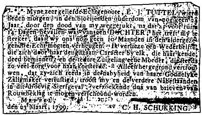 ------ ** Myne geliefde Echtgenoote, E. J. TUTTEL, wierd |
