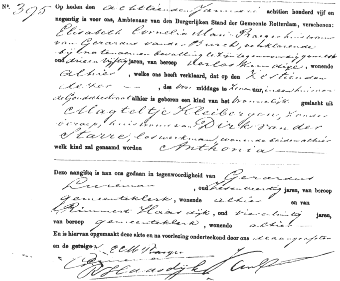 Kleibergen, zonder beroep, huisvrouw van Dirk van der Starre, loswerkman,