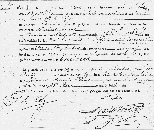 hetwelk hij bij deze geeft de voornaam van Andries.
