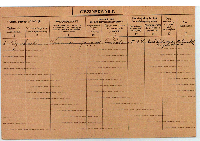 Anna Paulowna woonde in bij zijn gehuwde broer Cornelis Hoogmoed aan de Snaarmanslaan 75 te Alkmaar van 7 september 1936