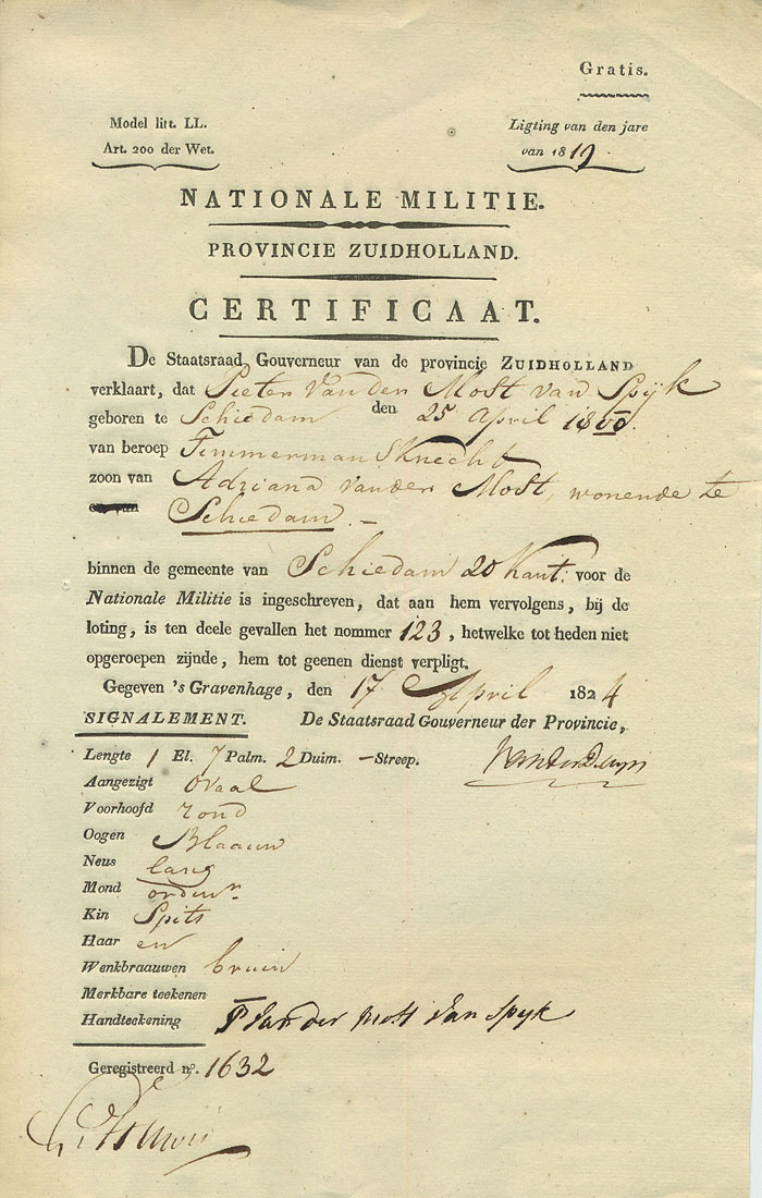 aangiftedatum Schiedam 23 april 1847 akte nr 129
