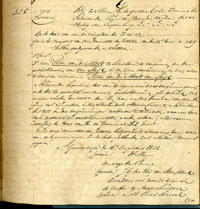 geslachtsnaam Van Spijk aan die Van van der Most toe voegen.