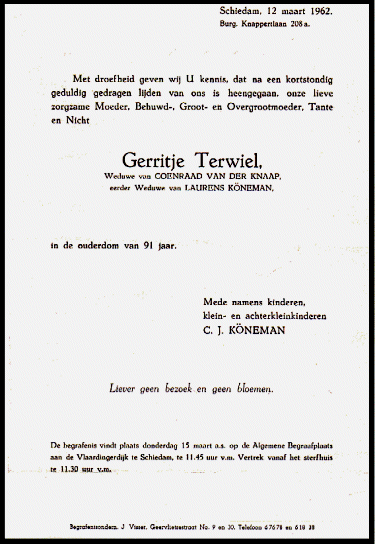 te Schiedam op 12 maart 1962, Burg. Knappertlaan 208a, in de ouderdom van 91