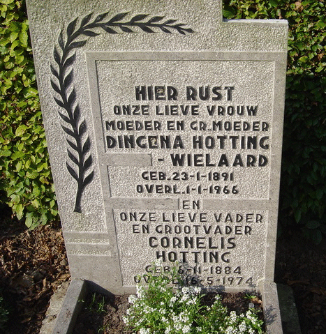 Dingena WIELAARD geb Ooltgensplaat 32.01.1891 ber overl Ooltgensplaat 01.01.1966 begr Ooltgensplaat tr Ooltgensplaat 27.07.1912 akte nr 15 Cornelis HOTTING geb Ooltgensplaat 06.11.1884 ber overl Ooltgensplaat 16.05.1974 begr Ooltgensplaat